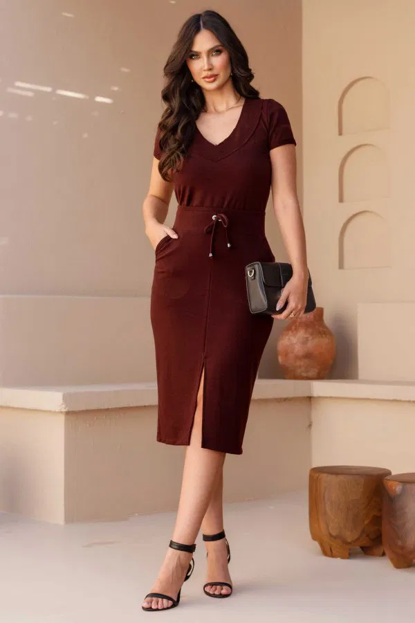 A melhor aposta para unir elegância e bem-estar são as malhas de qualidade. Pense em uma saia feita de um tecido como o Molecoton: ele tem um caimento mais encorpado que não marca o corpo, te dá total liberdade de movimento e tem um toque macio e gostoso na pele. É o tipo de tecido que te deixa arrumada, mas com a sensação de estar usando sua roupa mais confortável, perfeito para longas horas de conversa e risadas.